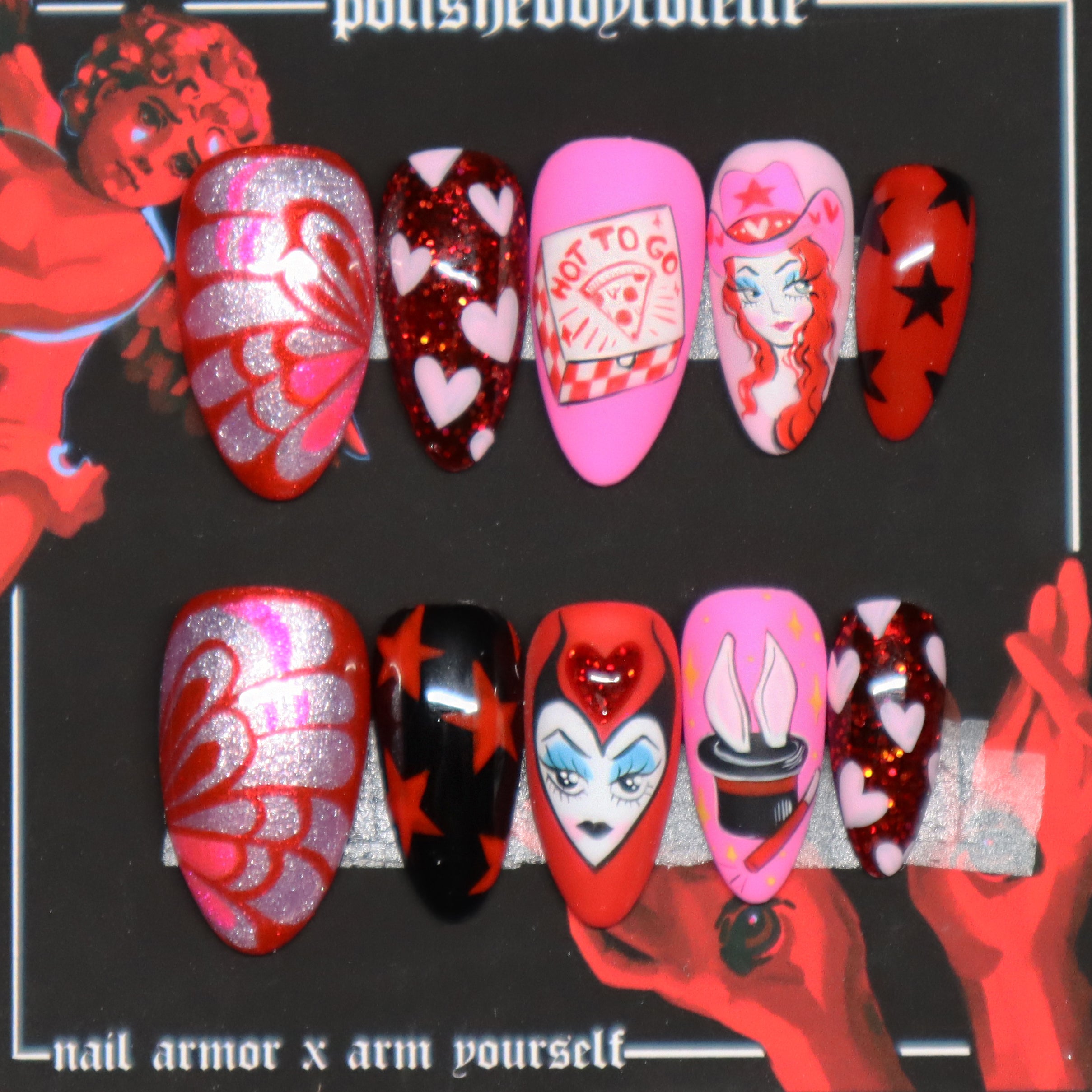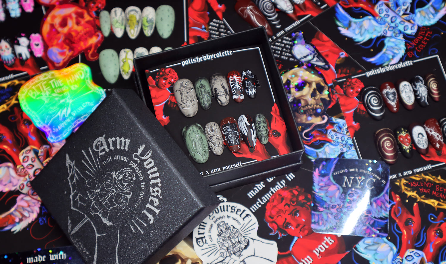 limited drops of wearable art for the depraved, disturbed and decrepit. arm yourself with re-usable hand painted press on nails polished by colette